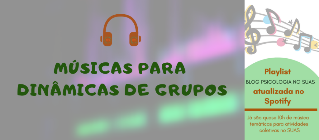 Post atualizado em: 08/12/2019 Agora estamos no Spotify e tem tanta música que perdemos a conta, mas posso dizer que as centenas de músicas já somam quase 10 horas e com certeza você vai encontrar uma que te ajude na realização de suas atividades coletivas. Olá pessoal! O post de hoje é especial (assim como os outros 😉 ) mas escrevo assim porque a promessa de atualizar a lista com as sugestões de músicas para dinâmicas/trabalhos com grupos, já estava virando caso de descuido – veja o Post anterior: Músicas para Dinâmicas de grupo – Parte I A música é uma linguagem que não precisa ser explicada, a riqueza está em cada um apreender o que determinada música foi capaz de simbolizar e provocar emoções e afetos. Então, a tomo como um disparador e campo provocador de emersão da emoção, da fala e da reflexão entre o que se diz e o que ressoa no outro. Cada música tem um mote, um assunto predominante, pelo menos na minha escuta e é esse critério que utilizo ao escolher a música B ou C para compartilhar com um determinado grupo. Ou seja, a escolha é intencional mas o alcance e o que cada sujeito vai fazer com o que ouviu depende da escuta e reflexão de cada um acerca do trabalho proposto. Música também é instrumento de aprendizado pra mim. Então, se você não trabalha com dinâmicas e não desenvolve trabalhos com grupos, apenas ESCUTE as músicas e ouça o que elas têm a dizer, garanto que virão boas reflexões e “desequilíbrio” em suas ideias. Vamos à lista! Agradeço a todos que deixaram sugestões no Post anterior e me permitiram conhecer mais músicas e atualizar esta lista! Instagram do Blog: @psicologianosuas Facebook: Blog Psicologia no SUAS