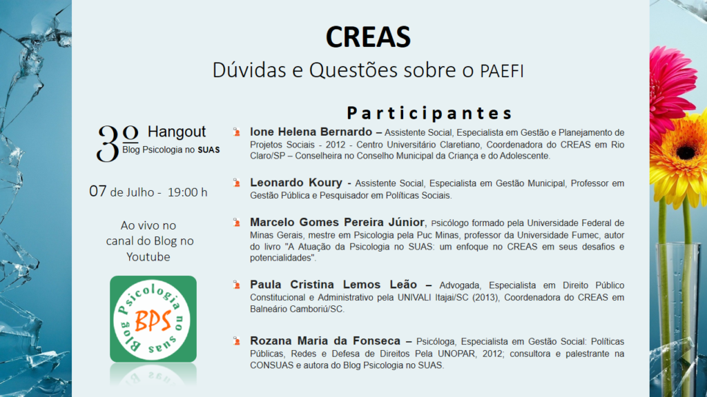 Hangout sobre o CREAS transmitido ao vivo pelo blog no dia 07/07